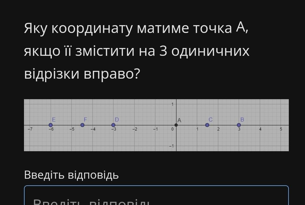 Какую координату будет иметь точка А, если ее сместить на 3 единичных отрезка вправо?