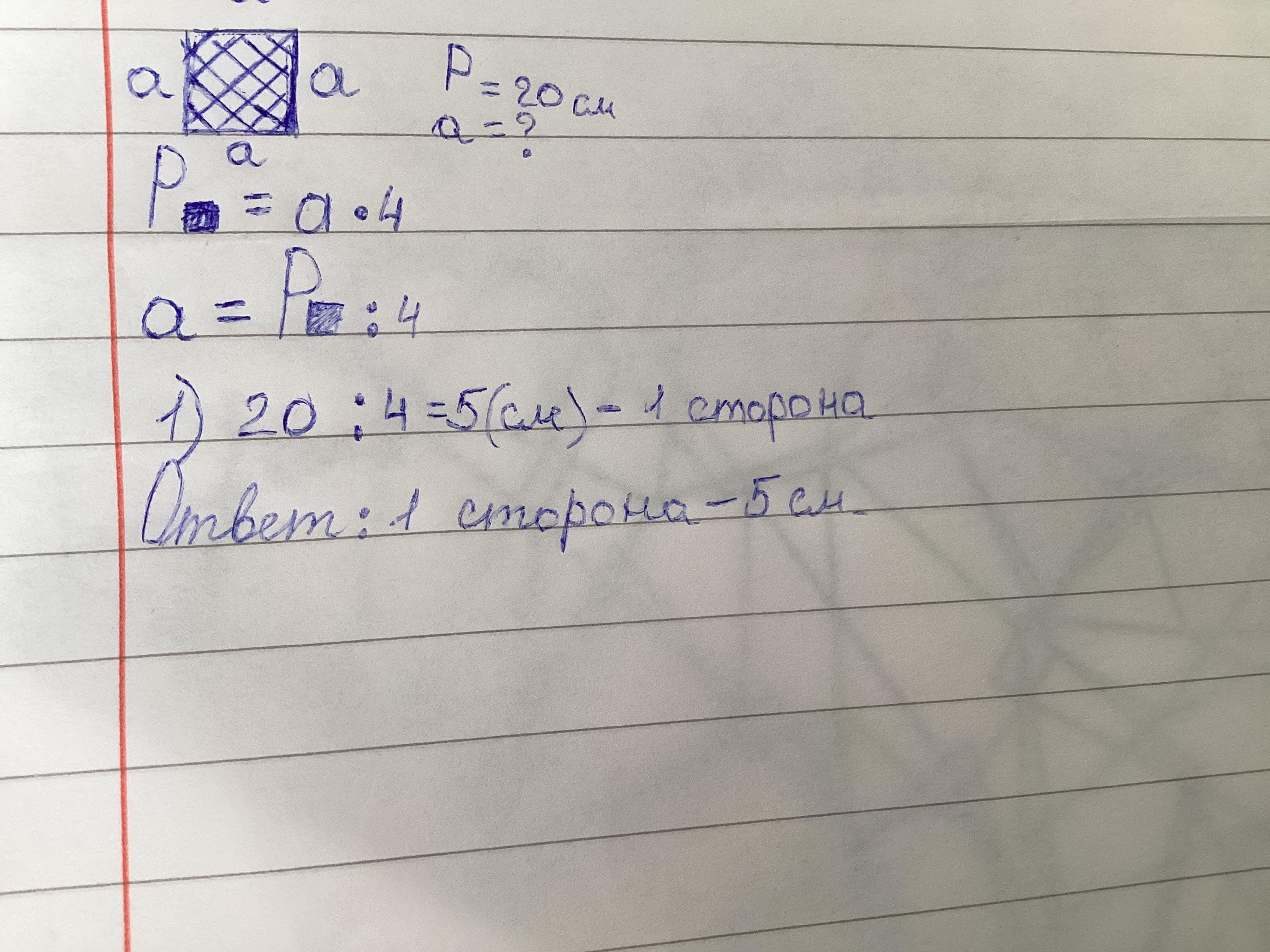 Начерти квадрат периметр которого 20 см найди площадь этого квадрата