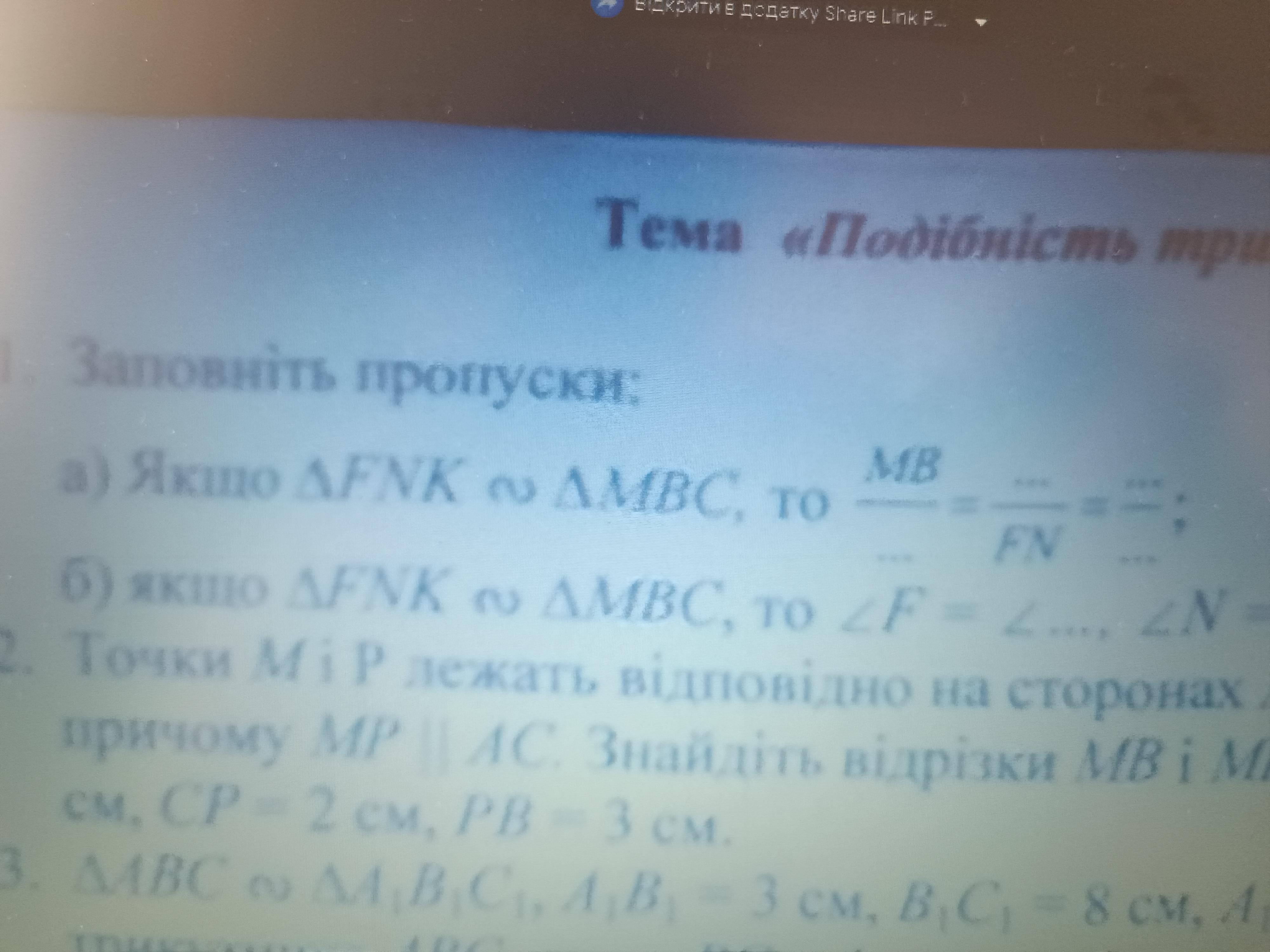 1 трикутник FNK подібні трикутника MBC , то MB=...=...