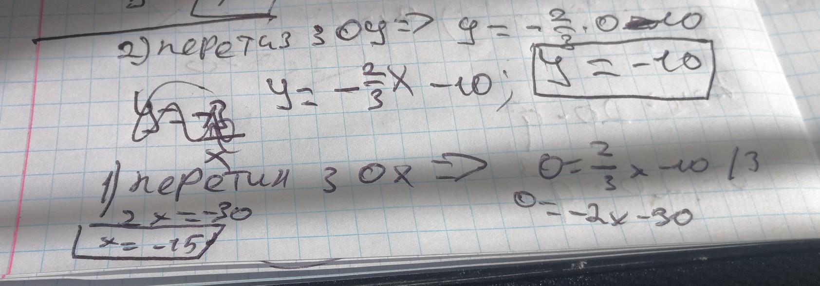 Найти координаты точек пересечения графика функции y= -2/3x - 10 с осями координат