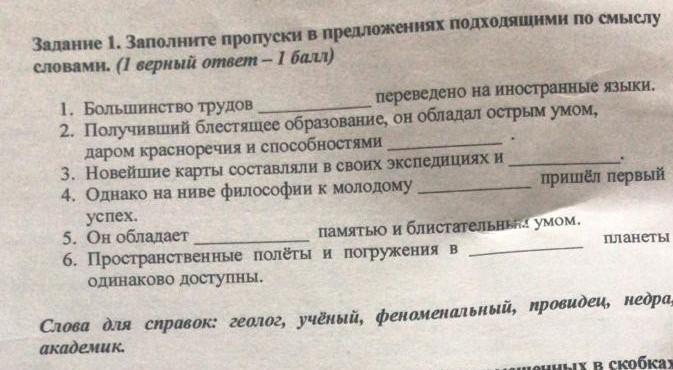 Заполните пропуски в предложениях подходящими по смыслу словами