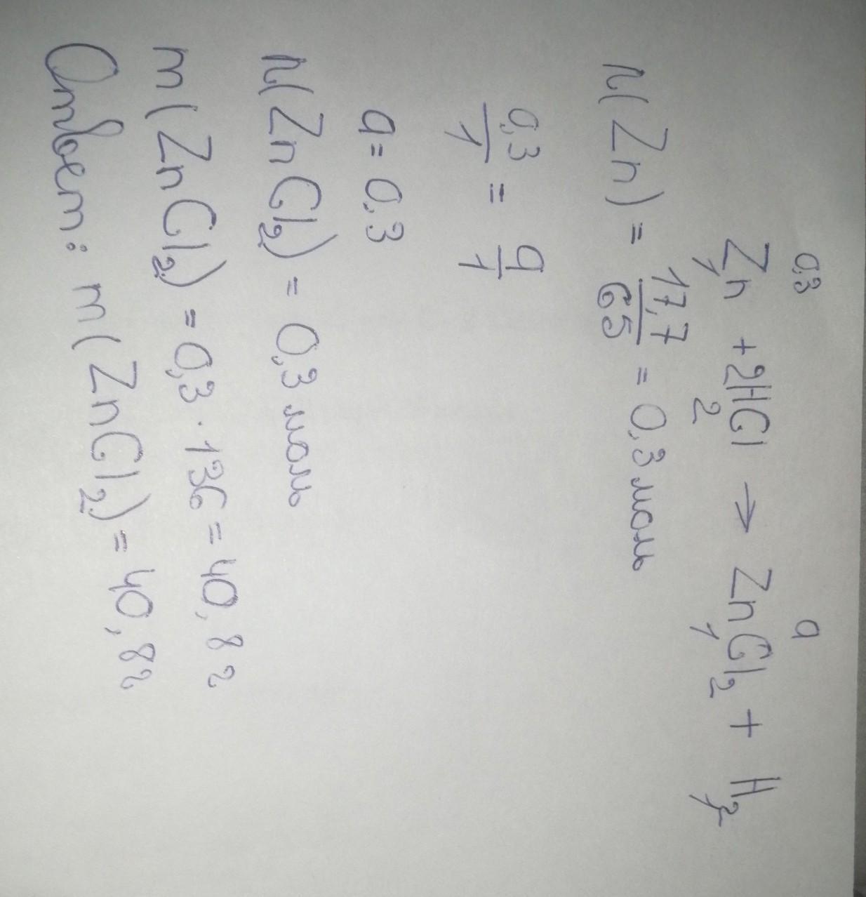 25б) рассчитайте массу соли,которая образуется при взаимодействии с 17.7 г. цинка с раствором хлороводорода