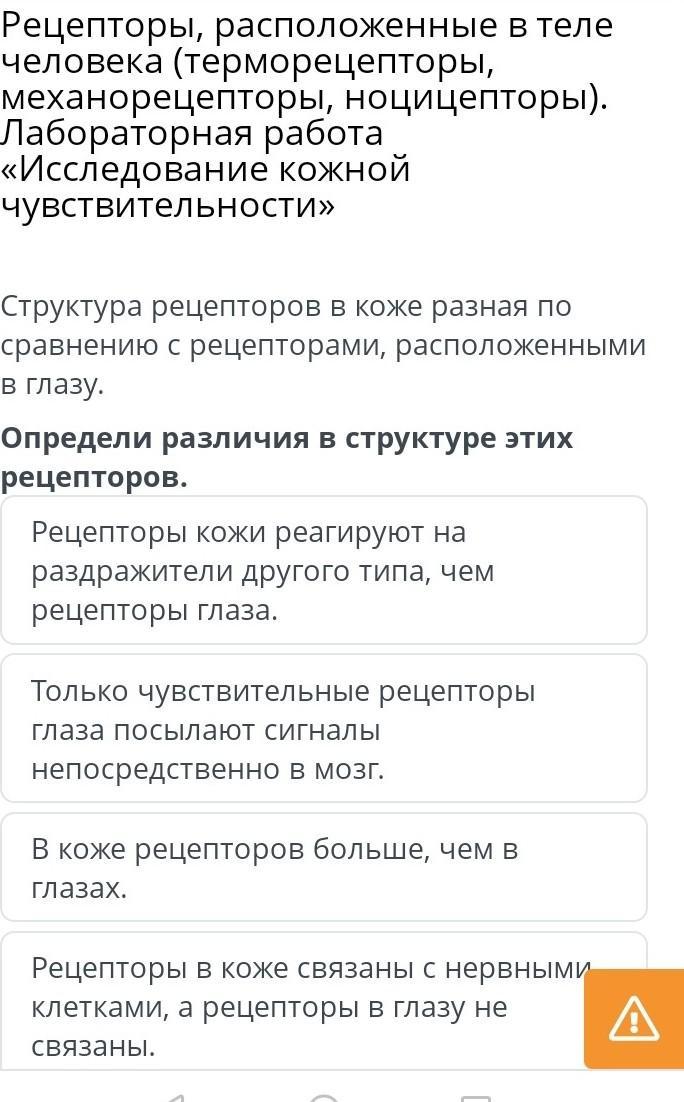 Рецепторы кожи реагируют на раздражители другого типа, чем рецепторы глаза.
