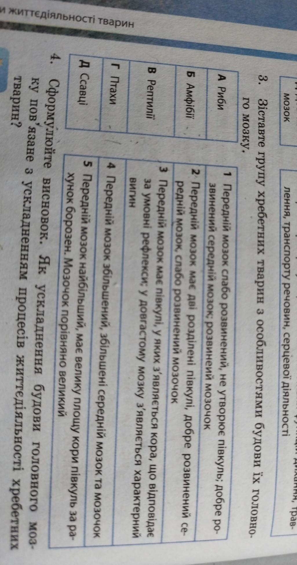 зіставте групу хребетних тварин з особливостями будови їх головного мозку. дуже потрібно
