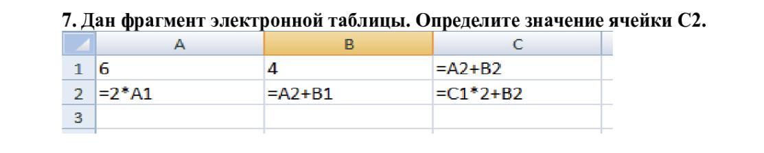 Дан фрагмент электронной таблицы.Определите значение ячейки C2.