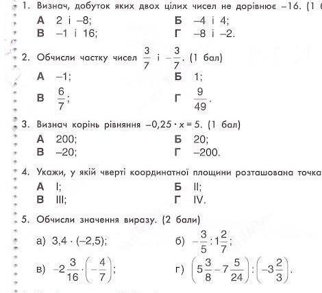 1) Г, 2) Б, 3) В, 4) не пойму какая точка, 5) =-8,5, =-7/15, =1 1/4, =1/3