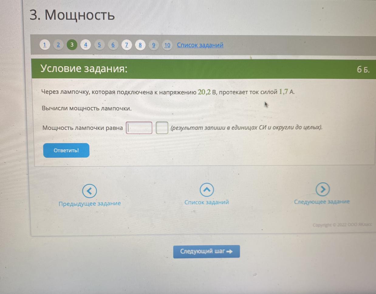 Мощность тока в лампе равна ______ Вт. Ответ округли до целых!
