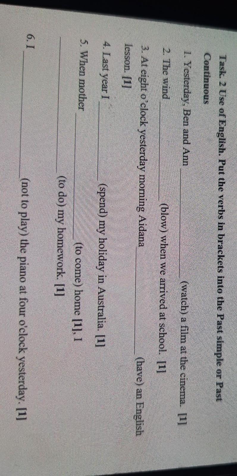 4. Last year I (spend) my holiday in Australia. [1] 5. When mother (to come) home [1], I (to do) my homework. [1]