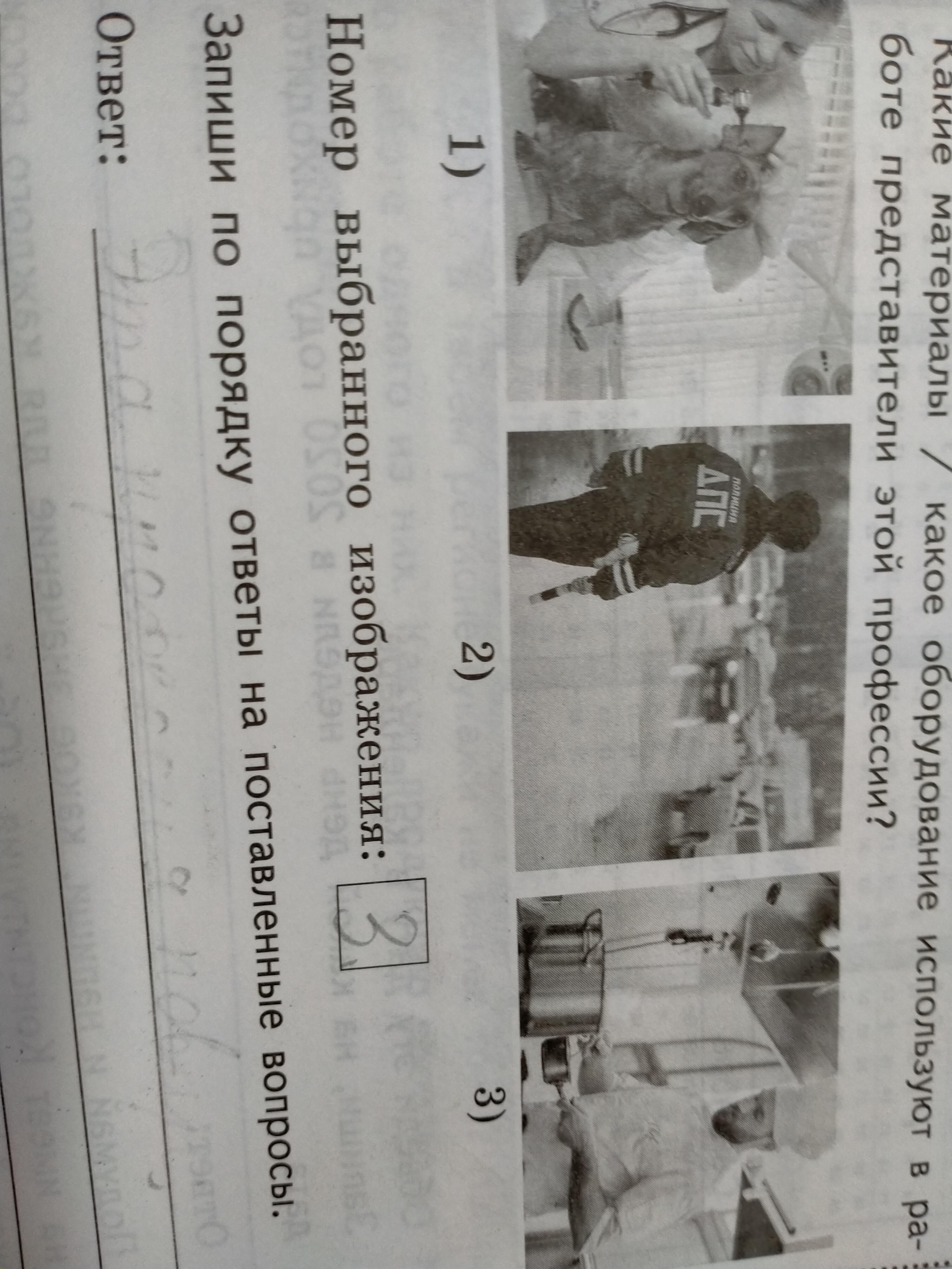 Рассмотри фотографии людей разных профессий за работой. Выбери ОДНО изображение, запиши его номер в специально выделенной клеточке.