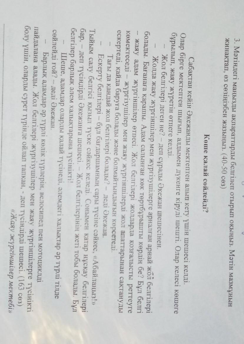 Мәтіндегі маңызды ақпараттарды белгілеп отырып оқыңыз. Мәтін мазмұнын жинақтап, өз сөзіңізбен жазыңыз. (40-50 сөз)