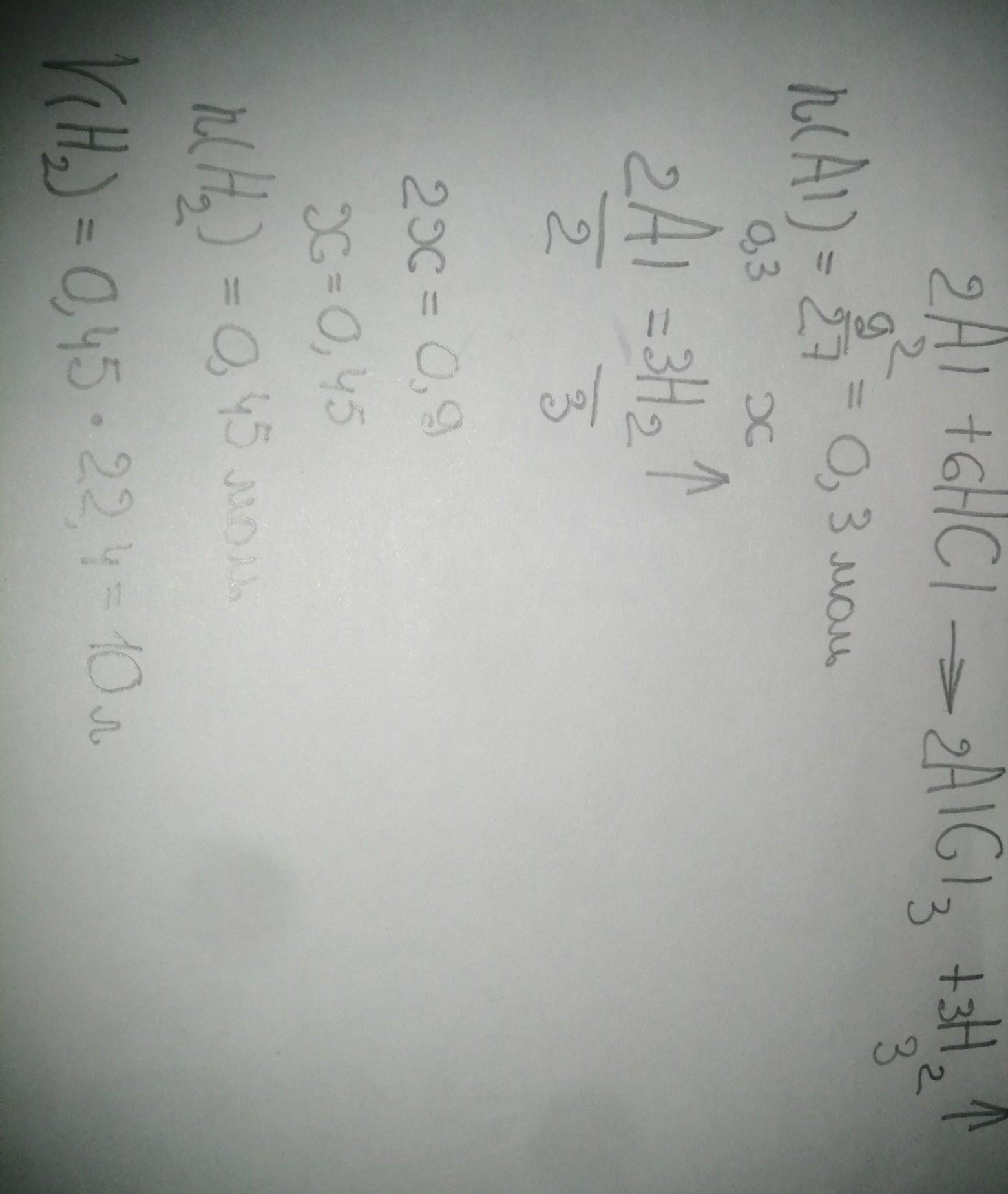 Определите, какой объём водорода образуется при взаимодействии 9 г алюминия с достаточным количеством соляной кислоты при нормальных условиях?
