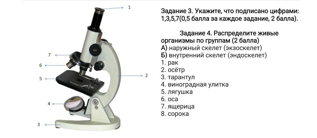 третье винты настройки четвёртые штатив пятые объектив 6 предметный столик 7 зеркало