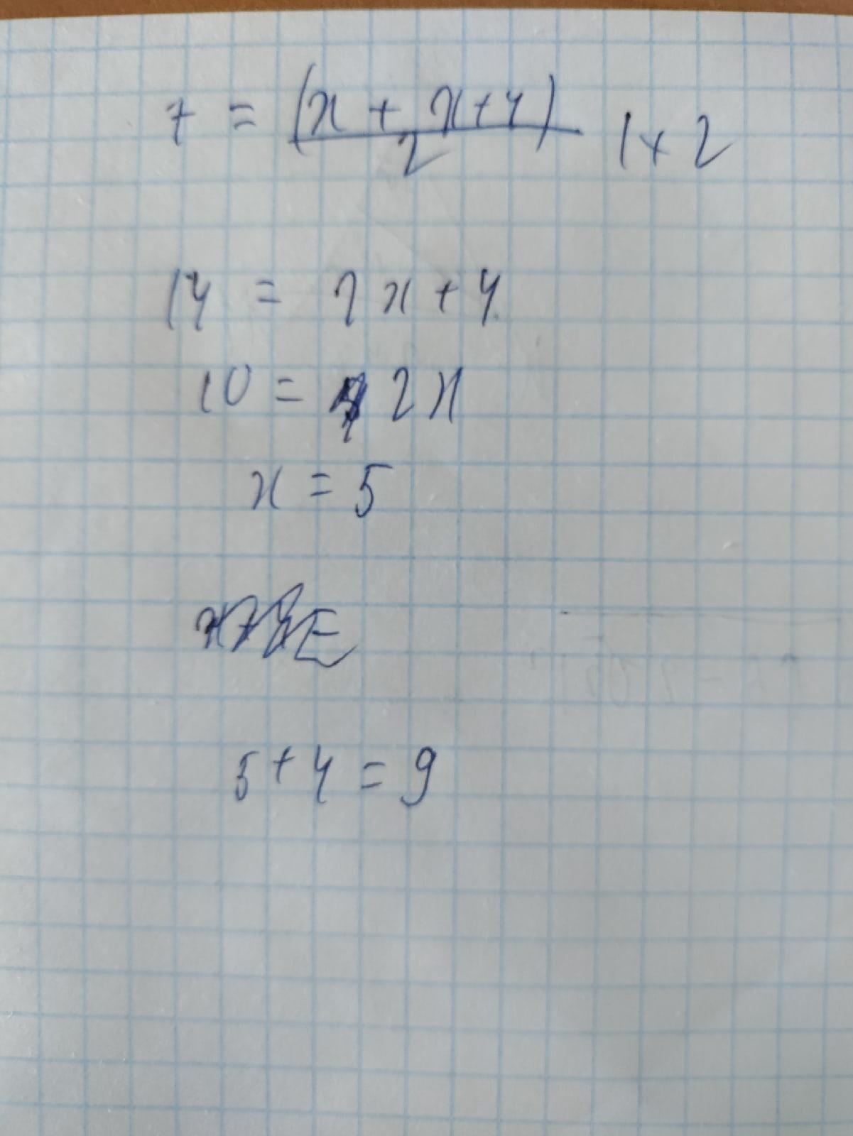 средняя линия трапеции равна полусумме оснований. x - первое основание x+4 - второе основание