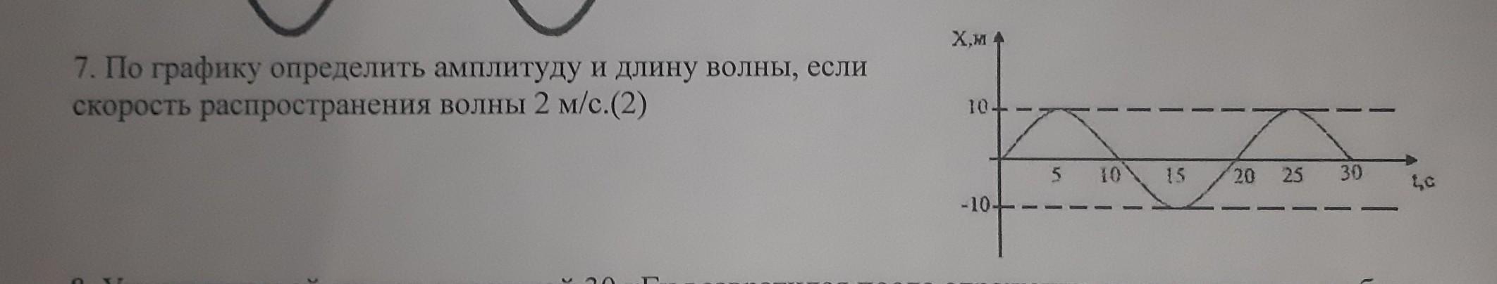 По графику определить амплитуду и длину волны, если скорость распространения волны 2м/с