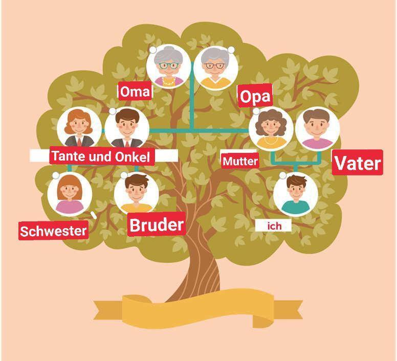 Ergänzen Sie das Bild. Необходимо подписать на картинке названия родственников по-немецки.