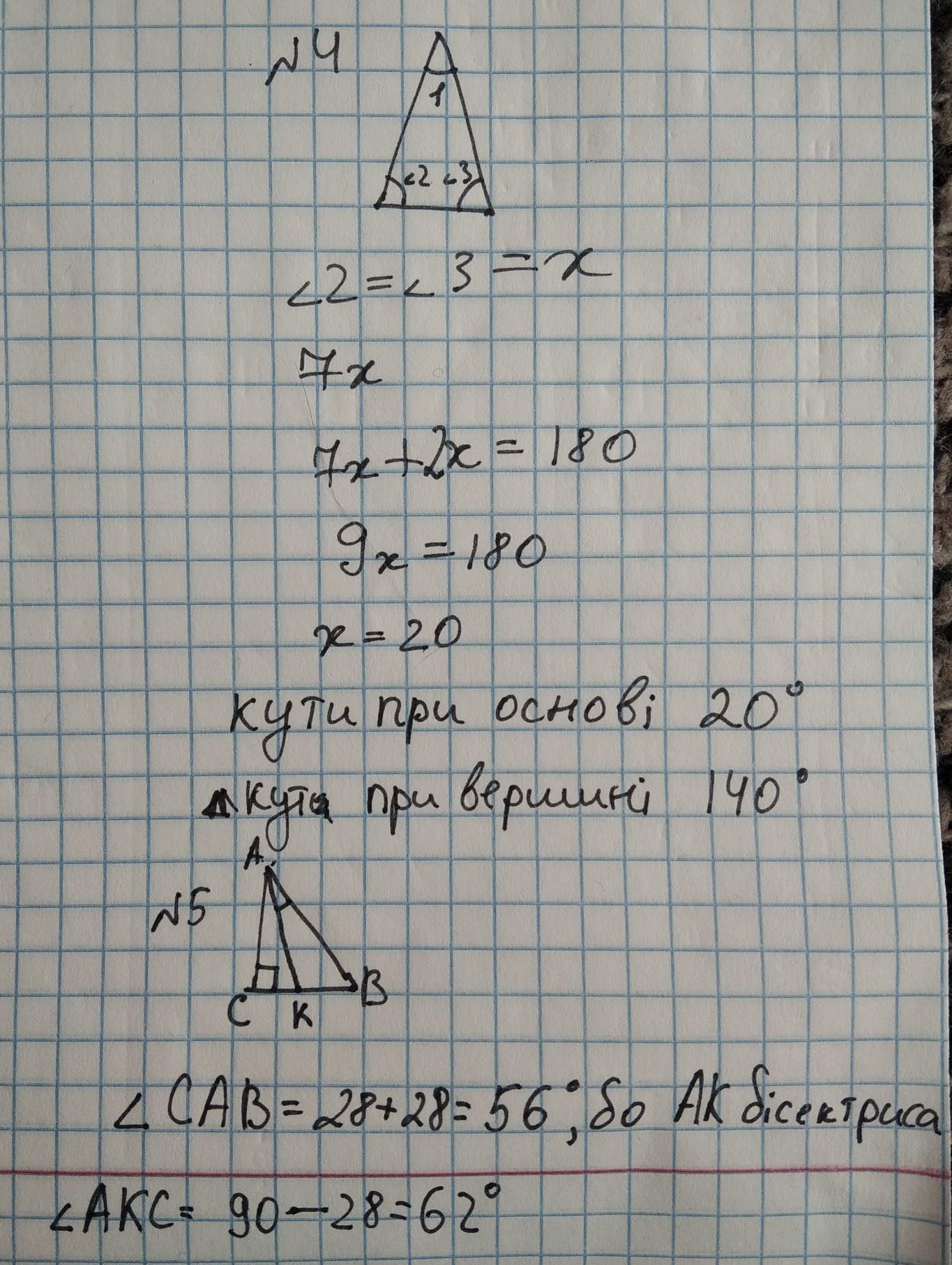 4.Найти углы равнобедренного треугольника если угол при вершине в 7 раз больше угла при основе. надеюсь правельно написала