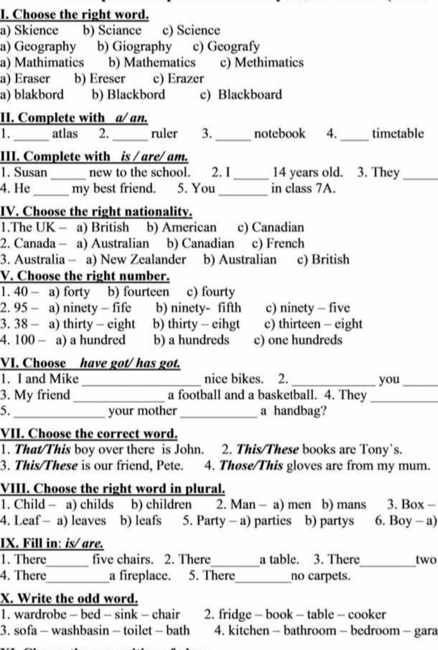 10) 1 - sink, 2 - book, 3 - sofa, 4 - garage