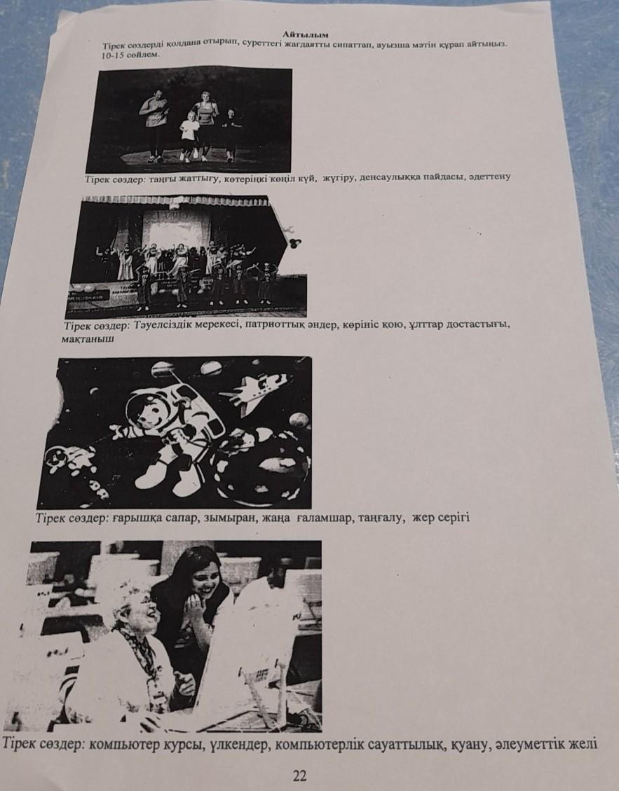 Тірек сөздер: ғарышқа сапар, зымыран, жаңа ғаламшар, таңғалу, жер серігі.