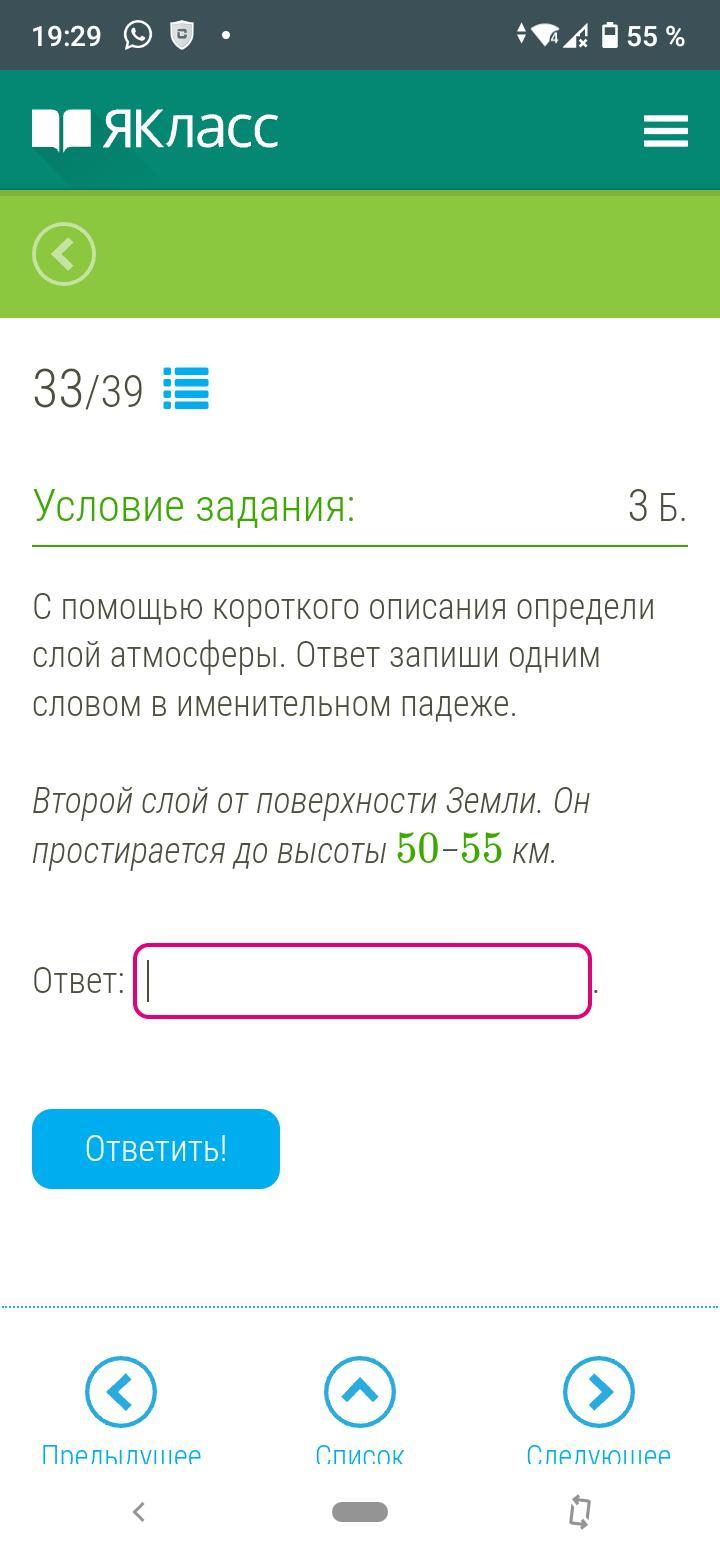 Простирается до высоты 50-55 км