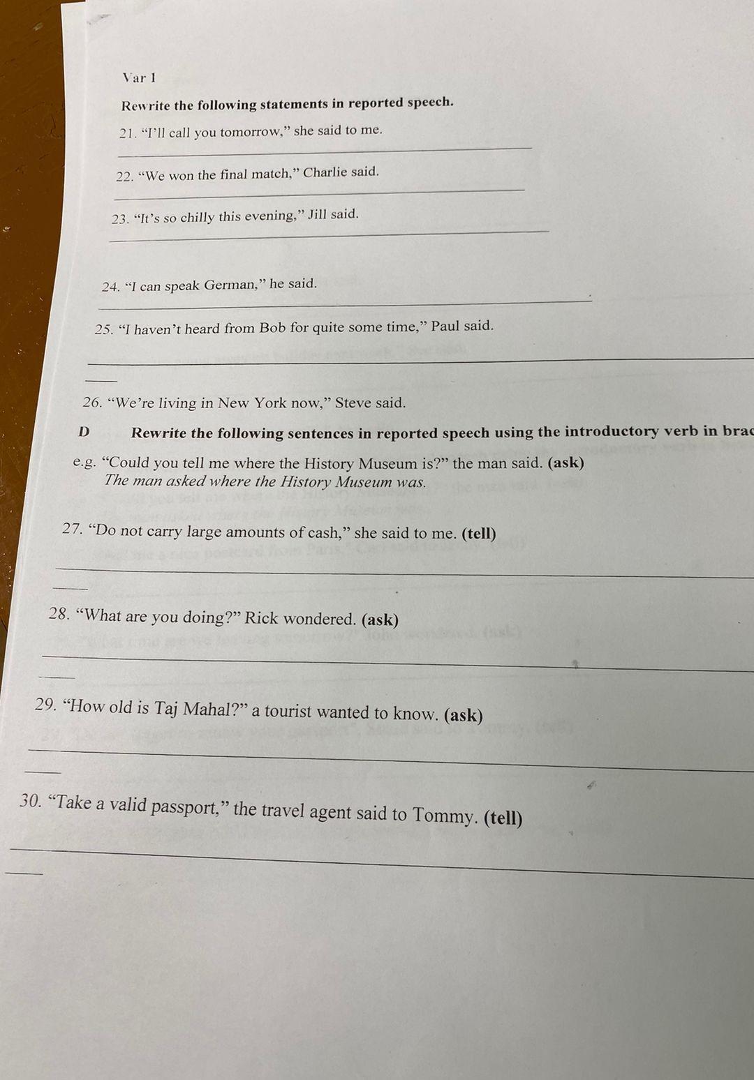 1.she said to me that she would call me tomorrow