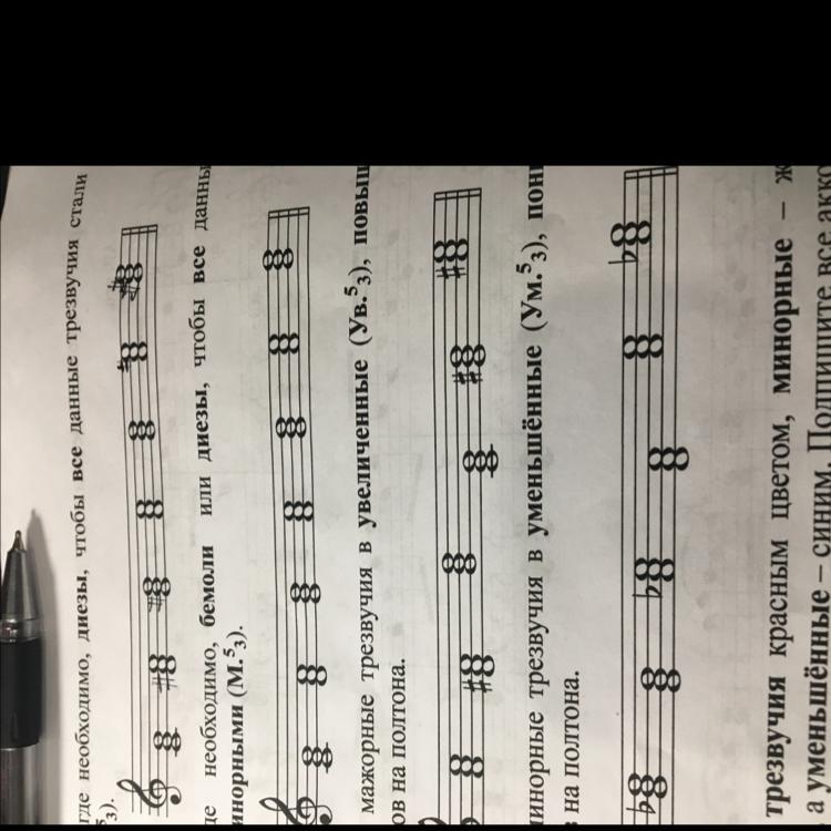 Поставьте там, где необходимо бемоли или деезы чтобы все данные трезвучия стали минорными номер 11
