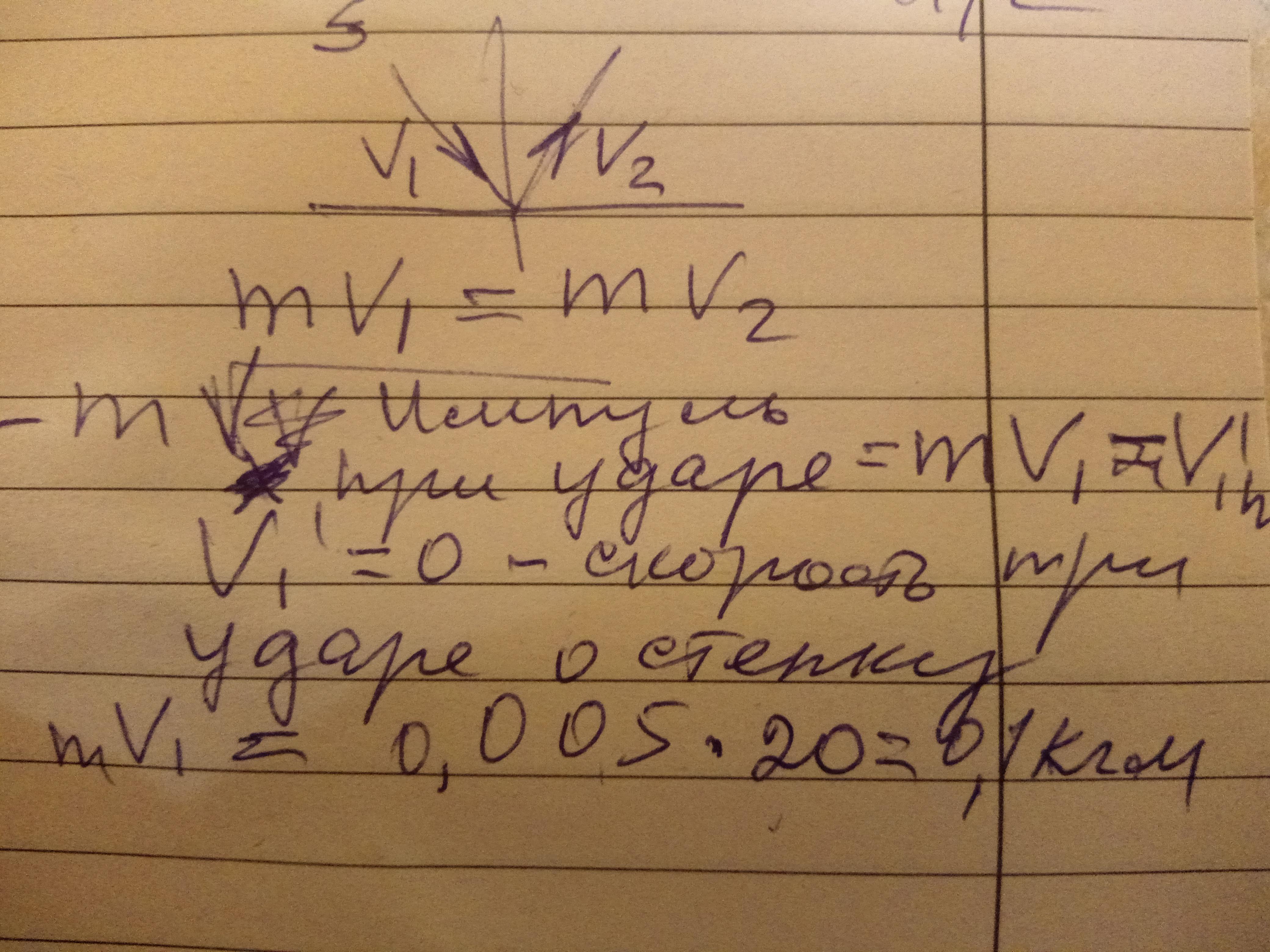 частица массой 5.0 г летящая со скоростью 20м/с ударяется о стену под углом 30 градусов к нормали и отскакивает от нее под тем же углом и с той же по модулю скоростью .Определите изменение импульса частицы при ударе.