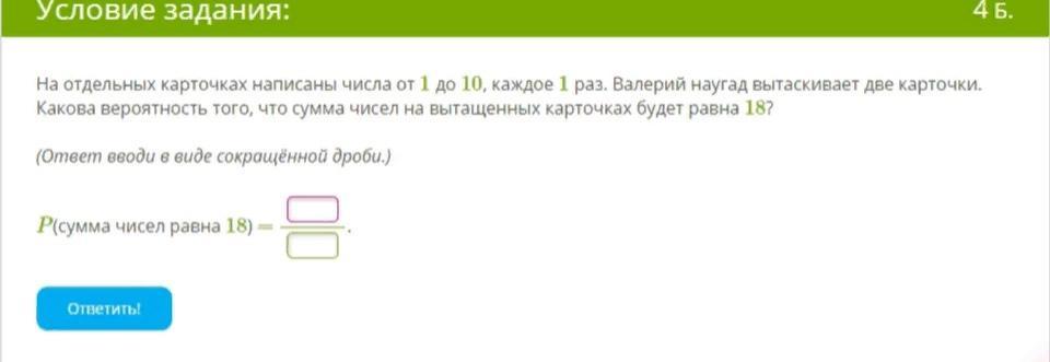 Сума чисел равна 18 = 10/8 верхние число 10, а нижнее чисто 8.