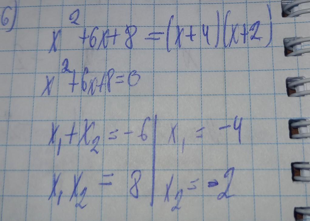 Пожалуйста помогите у меня проблема Вопрос: Разложите на множители квадратный трехчлен Икс в квадрате плюс шесть икс плюс восемь