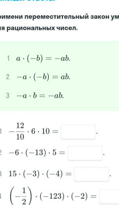 -  \frac{12}{10}  \times 6 \times 10 =  -  \frac{12 \times 10}{10}  \times 6 =  - 12 \times 6 =  - 72 \\  - 6 \times ( - 13) \times 5 =  - 13 \times ( - 30) = 390 \\ 15 \times ( - 3) \times ( -4 ) =  - 60 \times ( - 3) = 180