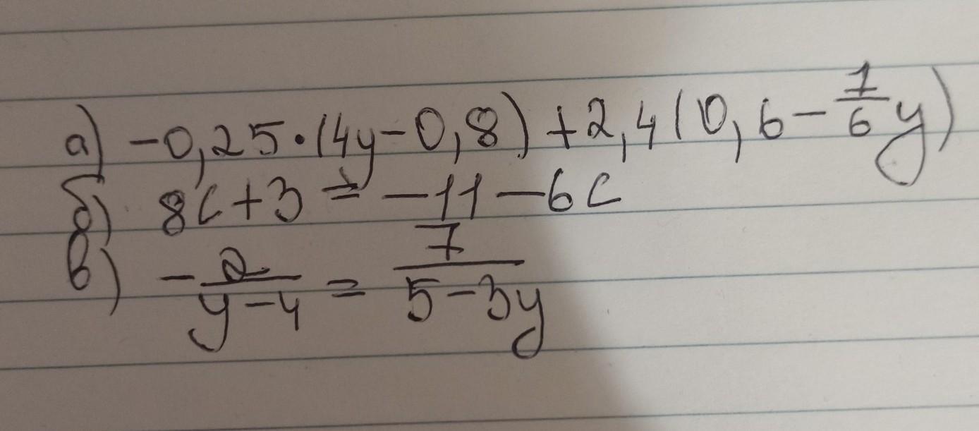 -0,25 * (4у - 0,8) + 2,4 * (0,6 - 1/6у) =
