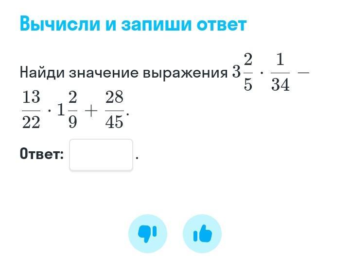 3 2/5×1/34-13/22×1 2/9+28/45=1/10-13/18+28/45=(-27/45)+28/45=0