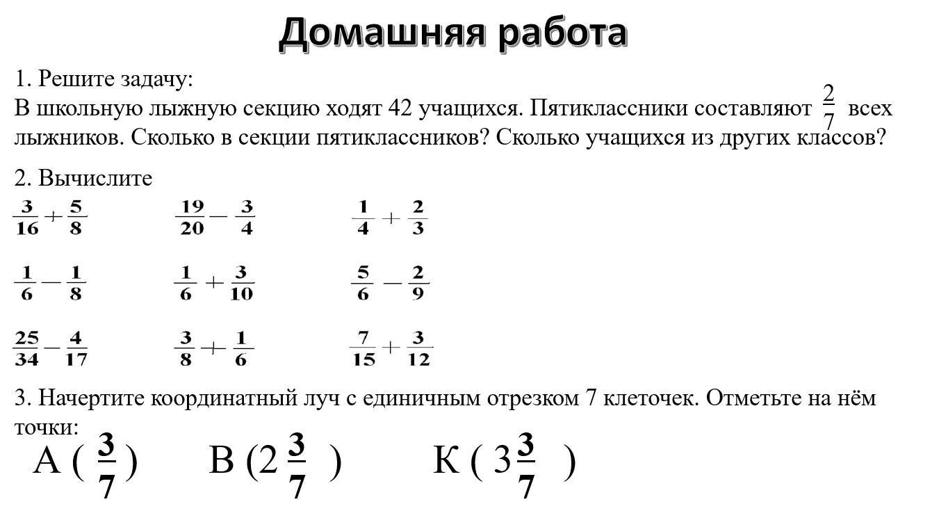 1) 42 * 2/7 = 6 * 2/1 = 12/1 = 12 (чел) - пятиклассников
