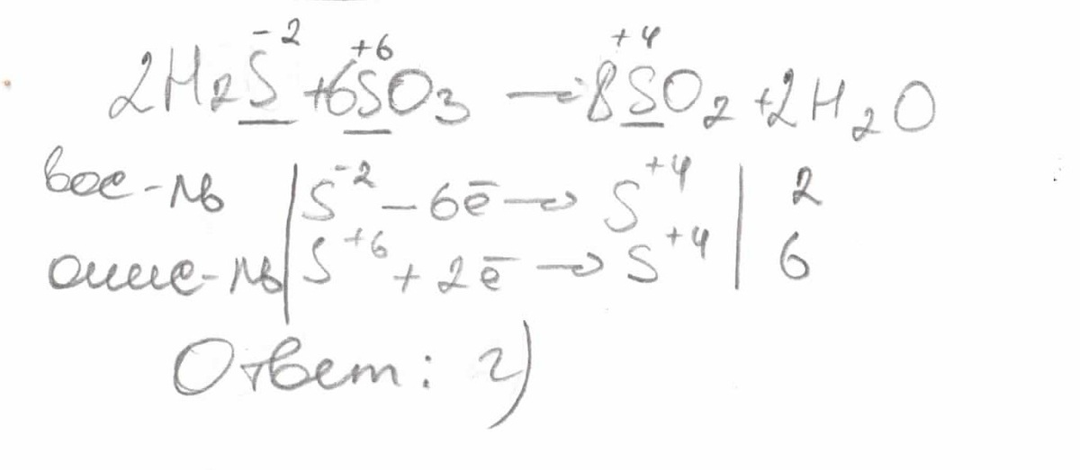 Коэфицент перед окислителем в уравнении H2S+SO3->SO2+H2O равен