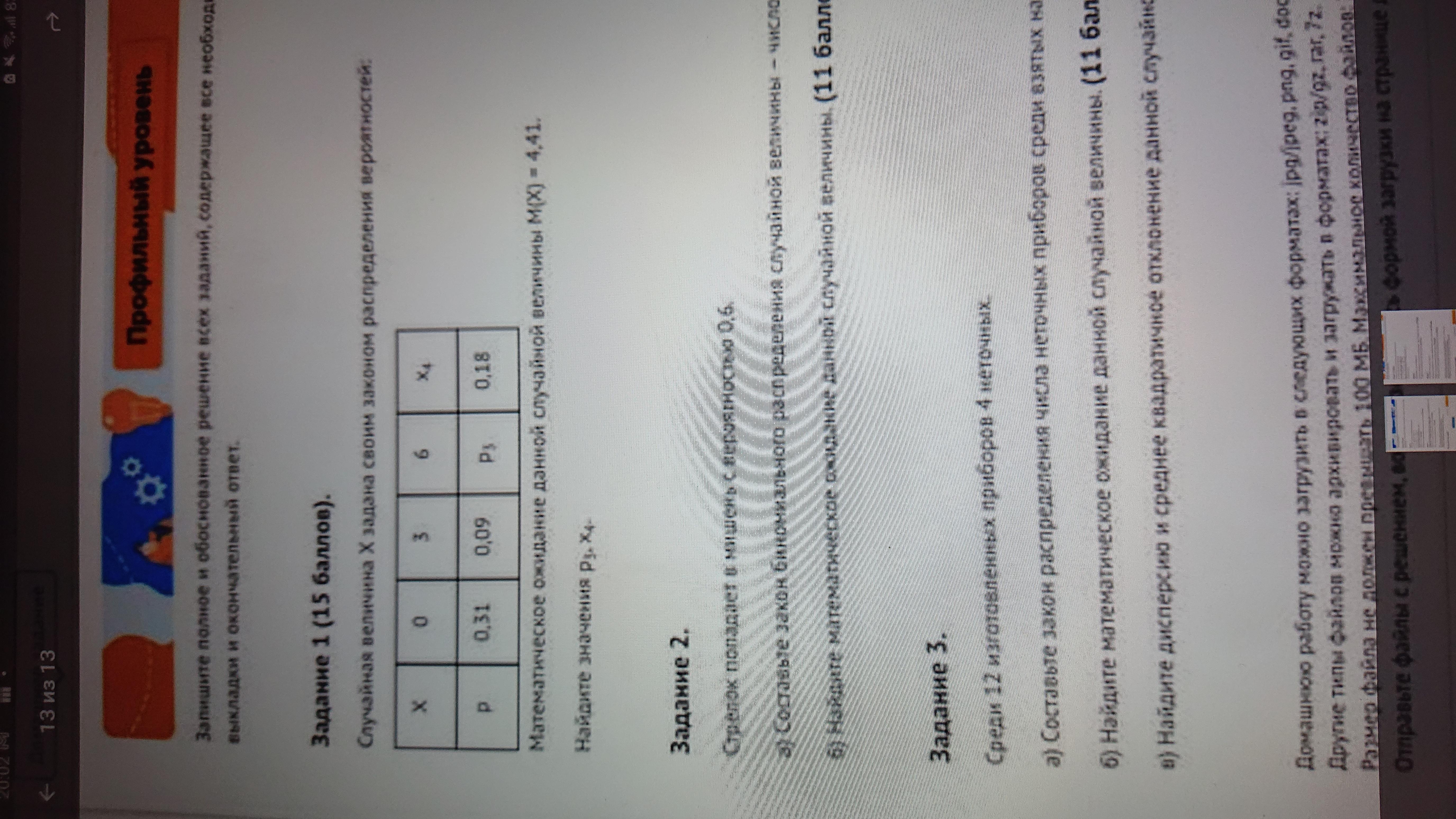 Математическое ожидание М(х)=х₁р₁+х₂р₃+х₃р₃+х₄р₄;