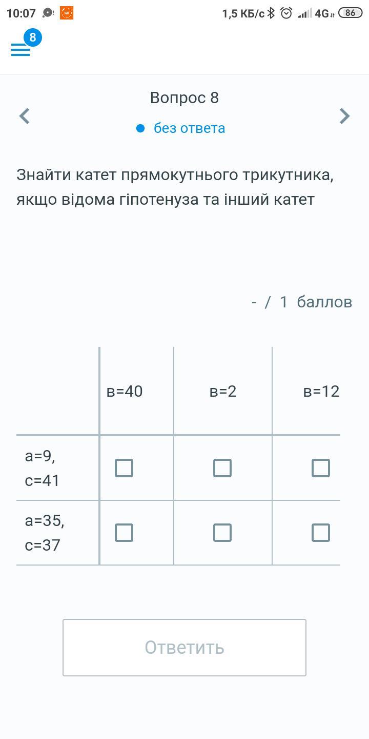 в^2=с^2-а^2=41^2-9^2=1681-81=1600