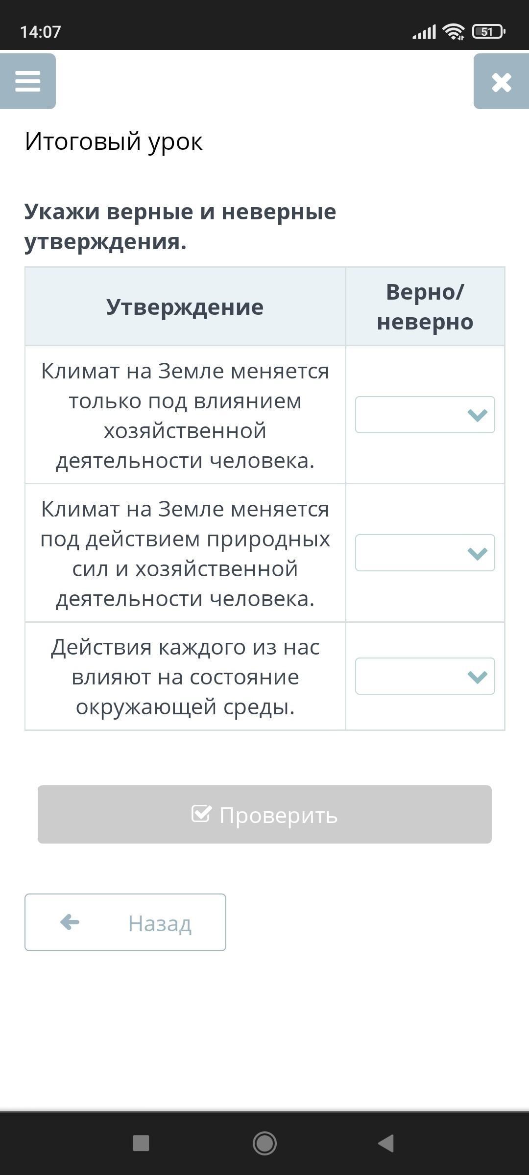 Укажи верные и неверные утверждения. Утверждение Верно/неверно Климат на Земле меняется только под влиянием хозяйственной деятельности человека. Климат на Земле меняется под действием природных сил и хозяйственной деятельности человека. Действия