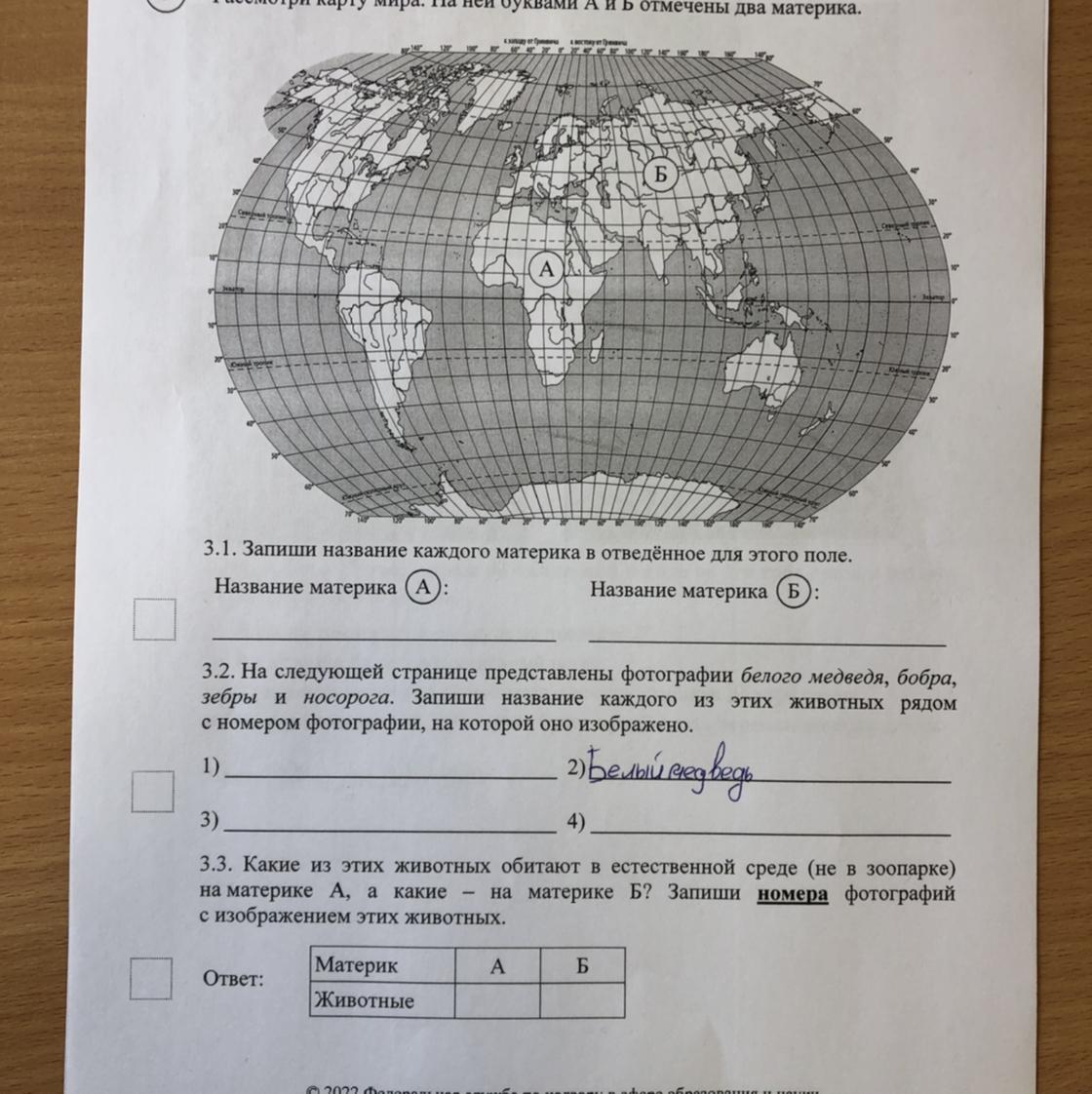3.1. Запиши название каждого материка в отведённое для этого поле.