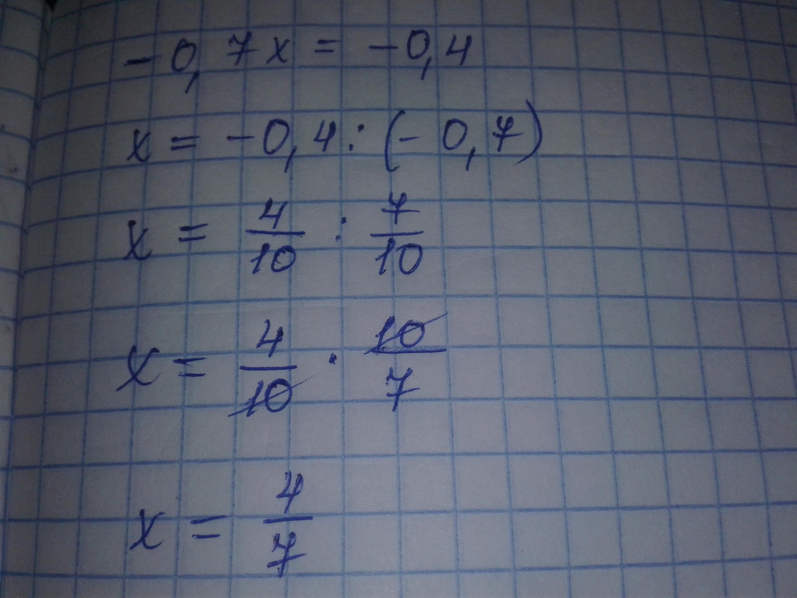 X=-4/10:(-7/10)-при делении дробь переворачивается