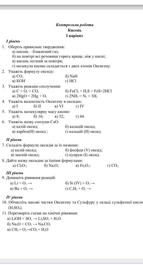 8 - А - оксид хлору (νιι), Б - натрій окисд, В - ферум (ιιι) оксид, Г - вуглекислий газ (діоксид вуглецю)