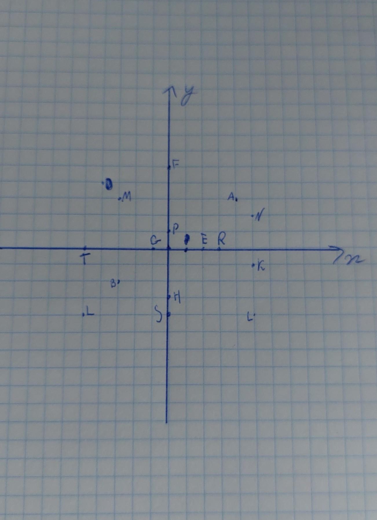 отметьте точки на координатной плоскости: А(4.,3) Б(-3.,-2) С(5.,-4) Д(-4.,4) Е(2.,0) F(0.,5) и т.д.(это очень срочно!! дам 30 баллов!)