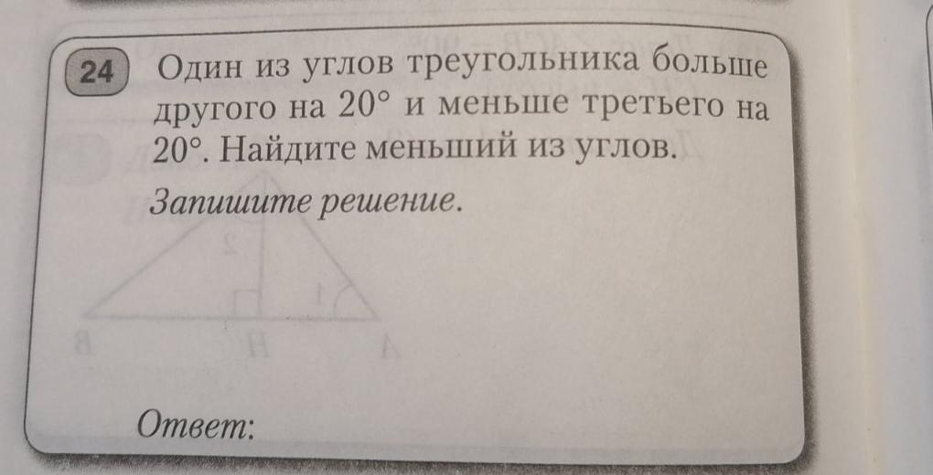 Понятно, что меньший угол = х-20 = 60-20 = 40 градусов.