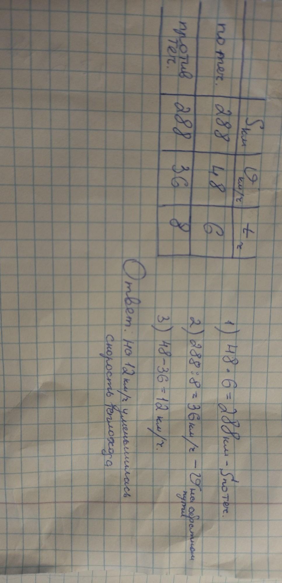 теплоход шёл по течению 6 часов со скоростью 48 км/ч. обратный путь он прошел за 8 часов . на сколько изменилась скорость теплохода?