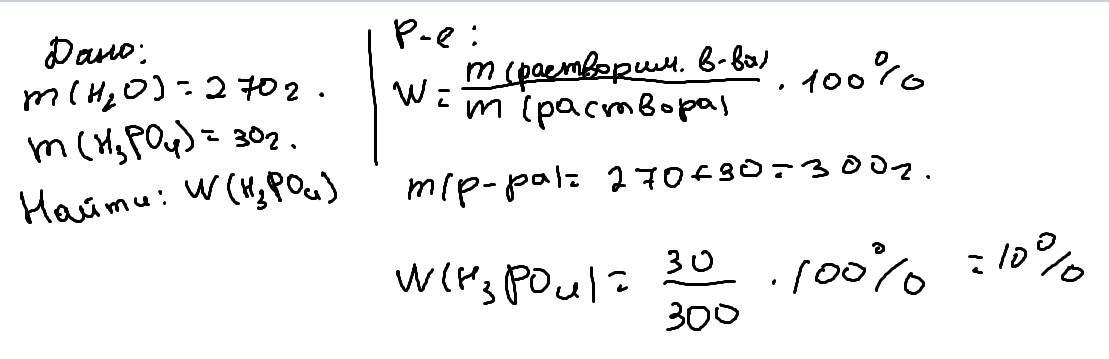 В 270 г воды растворили 30 г фосфорной кислоты. Определите массовую долю фосфорной
