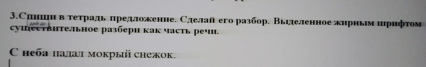3.Спиши в тетрадь предложение. Сделай его разбор. Выделенное жирным шрифтом существительное разбери как часть речи.