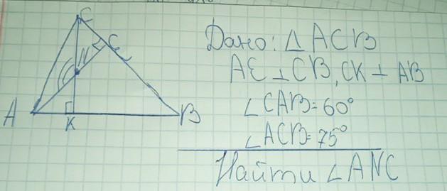 Рассмотрим четырехугольник ВЕNК. ∠АЕВ=∠СКВ=90° по условию, тогда ∠ЕNК=360-90-90-45=135°