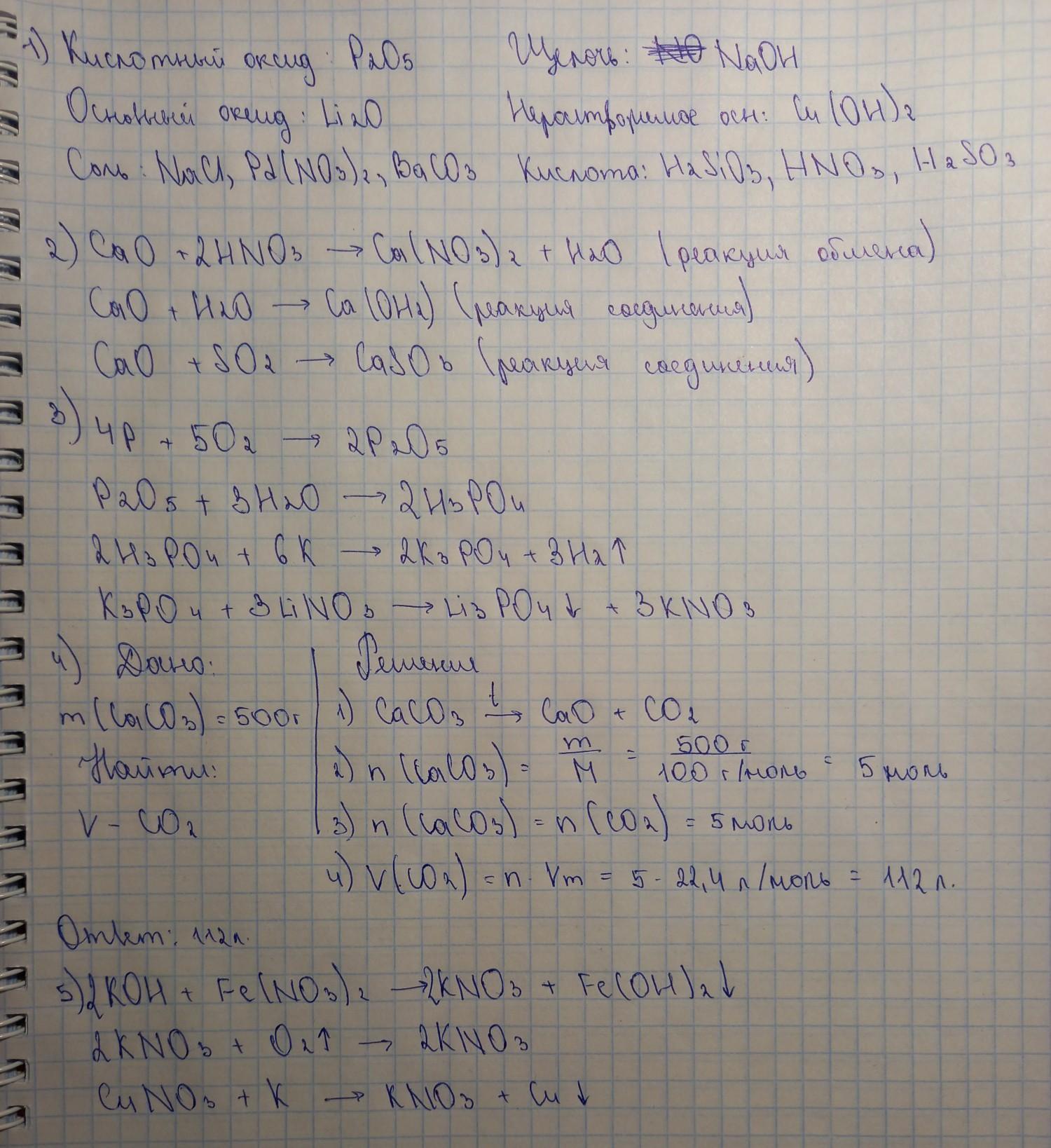 3) Решите цепочку превращений: Р→Р2O5→H3PO4→ K3PO4→ Li3 PO4