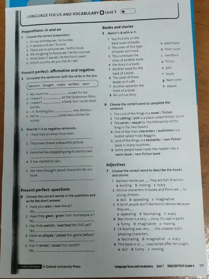 3 Rewrite 1-5 as negative sentences. 3 Veronika has stopped going to dance class 5 We have thought about characters for our book 2. They have drawn a beautiful picture. 1 I have had an email from Alen. 4 It has started to rain