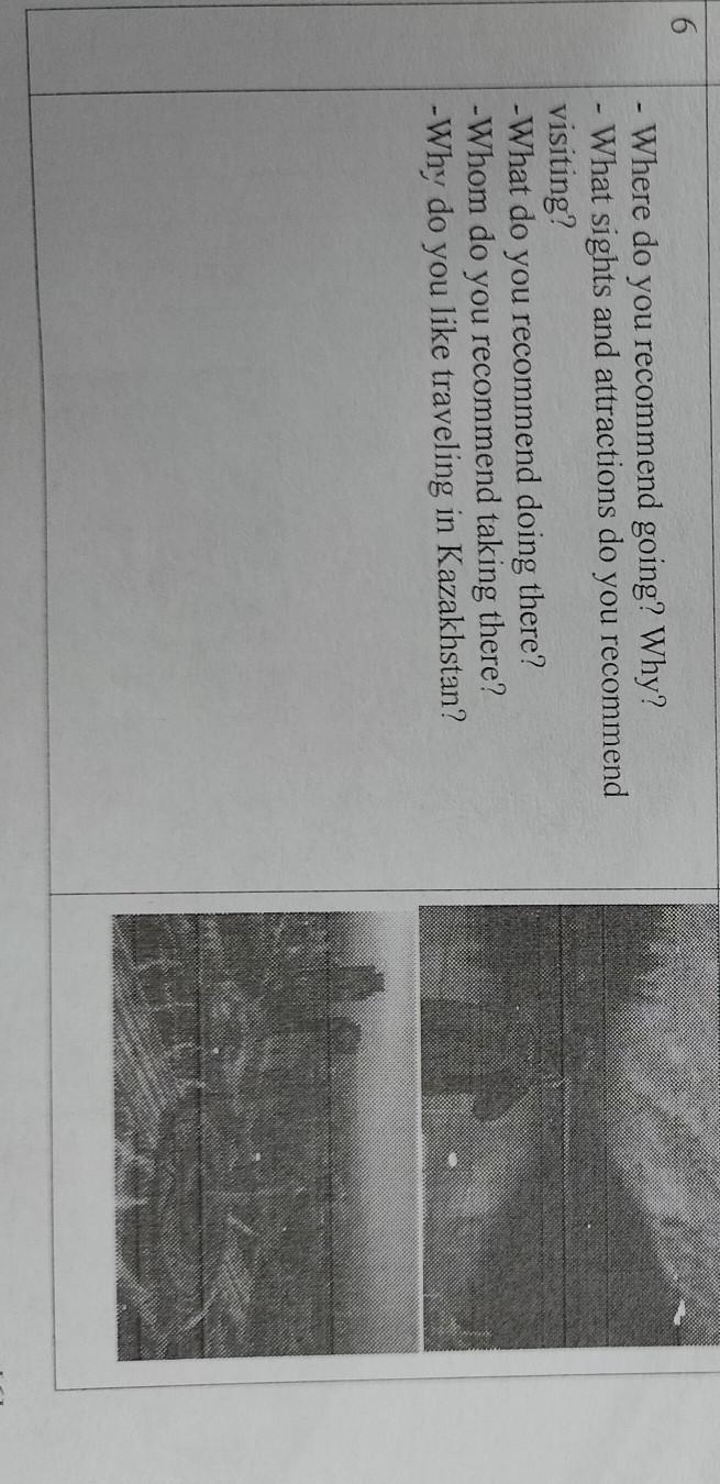 - Where do you recommend going? Why? - What sights and attractions do you recommend visiting? -What do you recommend doing there? -Whom do you recommend taking there? -Why do you like traveling in Kazakhstan?