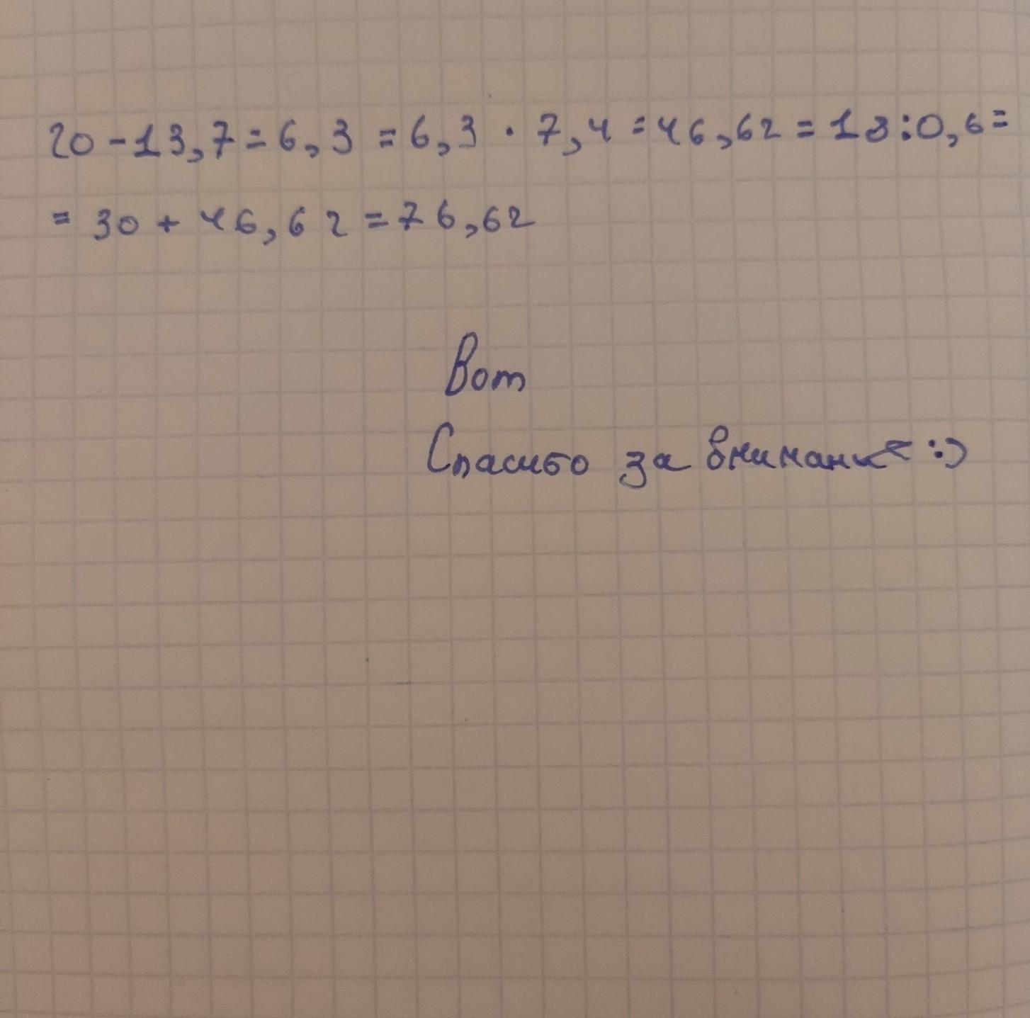 (20-13,7)+7,4+18:0,6 помогите пж на соче, напишите на листочке столбиком пж пж пж дам 100 баллов