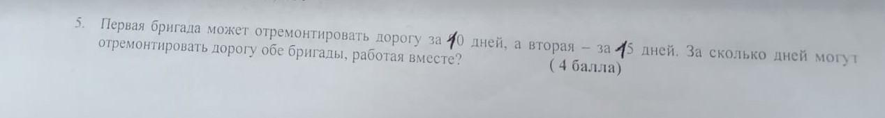 6. Первая бригада может отремонтировать дорогу за 10 дней, а вторая - за 15 дней. За сколько дней могут отремонтировать дорогу обе бригады, работая вместе?